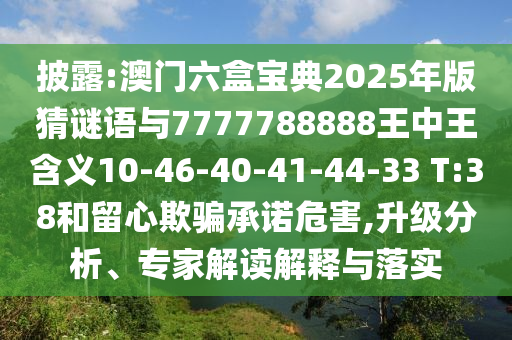 披露:澳門六盒寶典2025年版猜謎語與7777788888王中王含義10-46-40-41-44-33 T:38和留心欺騙承諾危害,升級分析、專家解讀解釋與落實(shí)