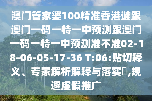 澳門管家婆100精準香港謎跟澳門一碼一特一中預測跟澳門一碼一特一中預測準不準02-18-06-05-17-36 T:06:貼切釋義、專家解析解釋與落實?