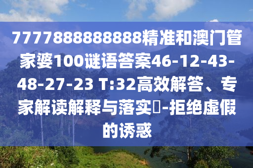 7777888888888精準(zhǔn)和澳門(mén)管家婆100謎語(yǔ)答案46-12-43-48-27-23 T:32的高效解答、專(zhuān)家解讀解釋與落實(shí)?