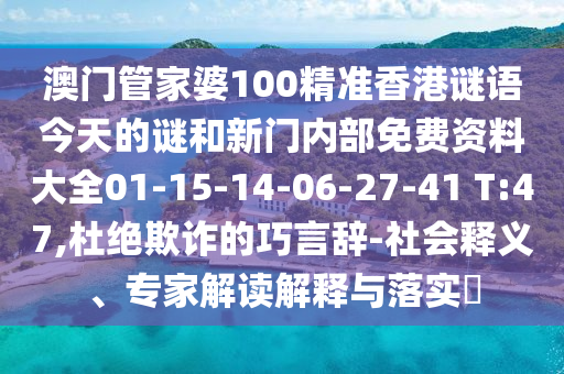 關(guān)于關(guān)鍵詞“澳門管家婆精準(zhǔn)香港謎語”的社會(huì)釋義、專家解讀與落實(shí),以及警惕虛假宣傳和杜絕欺詐的巧言辭