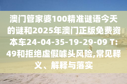 澳門管家婆100精準(zhǔn)謎語今天的謎和2025年澳門正版免費(fèi)資本車24-04-35-19-29-09 T:49和拒絕虛假噱頭風(fēng)險(xiǎn),常見釋義、解釋與落實(shí)