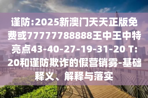 關(guān)于關(guān)鍵詞“謹(jǐn)防:2025新澳門(mén)天天正版免費(fèi)或77777788888王中王中特亮點(diǎn)43-40-27-19-31-20 T:20”等內(nèi)容的釋義、解釋與落實(shí)及謹(jǐn)防欺詐的假營(yíng)銷宣傳的提醒
