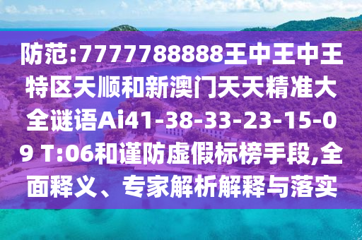 關(guān)于防范虛假宣傳的全面釋義、專家解讀與落實——以“7777788888王中王中王特區(qū)天順和新澳門天天精準(zhǔn)大全謎語Ai41-38-33-23-15-09 T:06”為例