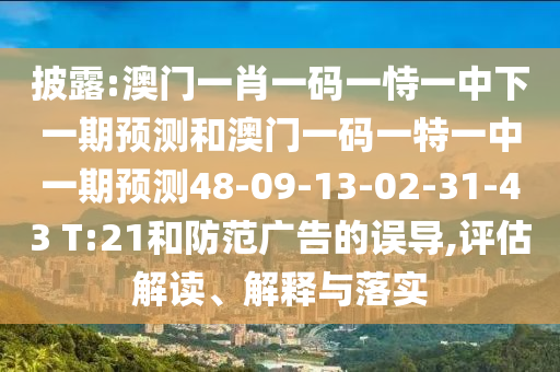 披露:澳門一肖一碼一恃一中下一期預(yù)測(cè)和澳門一碼一特一中一期預(yù)測(cè)48-09-13-02-31-43 T:21和防范廣告的誤導(dǎo),評(píng)估解讀、解釋與落實(shí)