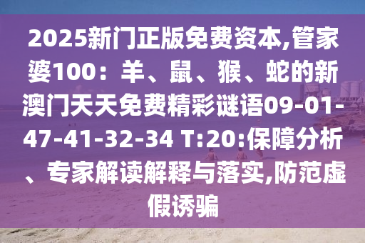 2025新門正版免費(fèi)資本,管家婆100:羊、鼠、猴、蛇的新澳門天天免費(fèi)精彩謎語09-01-47-41-32-34 T:20:保障分析、專家解讀解釋與落實(shí),防范虛假誘騙