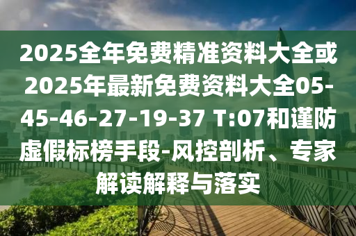 2025全年免費精準資料大全或2025年最新免費資料大全05-45-46-27-19-37 T:07的風控剖析、專家解讀解釋與落實