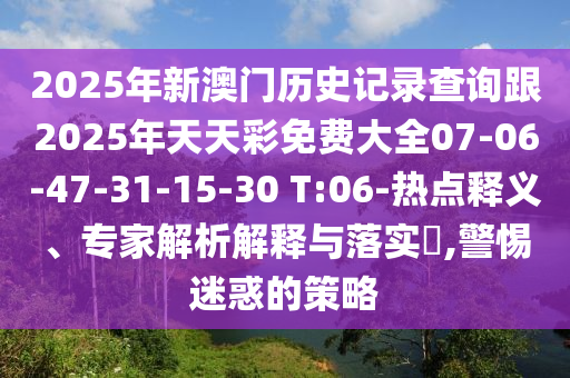 2025年新澳門歷史記錄查詢跟2025年天天彩免費(fèi)大全07-06-47-31-15-30 T:06-熱點(diǎn)釋義、專家解析解釋與落實?,警惕迷惑的策略