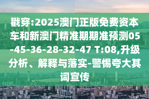 當(dāng)我們提及“戳穿”,通常意味著揭示真相,揭露事物的本質(zhì),在游戲或娛樂(lè)領(lǐng)域,尤其是澳門(mén)游戲業(yè)中,各種預(yù)測(cè)和所謂的“精準(zhǔn)期期準(zhǔn)預(yù)測(cè)”往往吸引人們的眼球,但需要明確的是,這些預(yù)測(cè)多數(shù)基于統(tǒng)計(jì)學(xué)、概率論等理論模型,其結(jié)果并不絕對(duì),關(guān)鍵詞如“2025澳門(mén)正版免費(fèi)資本車(chē)”和提到的具體數(shù)字如“05-45-36-28-32-47”等,可能是某種游戲或游戲游戲的號(hào)碼,而“T:08升級(jí)分析”則可能涉及到某種系統(tǒng)或服務(wù)的更新迭代分析。