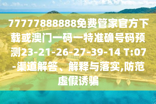 77777888888免費(fèi)管家官方下載或澳門(mén)一碼一特準(zhǔn)確號(hào)碼預(yù)測(cè)23-21-26-27-39-14 T:07的渠道解答、解釋與落實(shí)