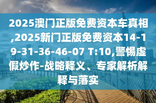 2025澳門正版免費資本車真相,2025新門正版免費資本14-19-31-36-46-07 T:10,警惕虛假炒作-戰(zhàn)略釋義、專家解析解釋與落實