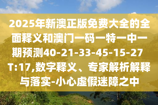 2025年新澳正版免費(fèi)大全的全面釋義和澳門一碼一特一中一期預(yù)測(cè)40-21-33-45-15-27 T:17:數(shù)字釋義、專家解析解釋與落實(shí)