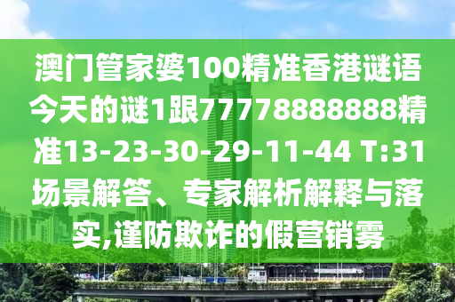澳門管家婆100精準香港謎語今天的謎1跟77778888888精準13-23-30-29-11-44 T:31的場景解答、專家解析解釋與落實