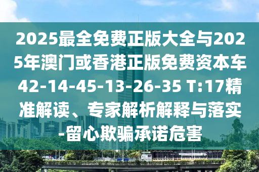 2025最全免費正版大全與2025年澳門或香港正版免費資本車42-14-45-13-26-35 T:17的精準解讀、專家解析解釋與落實