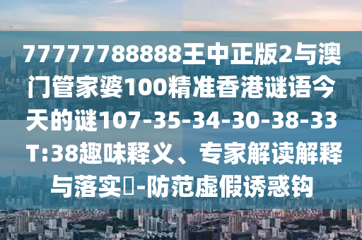 77777788888王中正版2與澳門管家婆100精準(zhǔn)香港謎語今天的謎107-35-34-30-38-33 T:38的趣味釋義、專家解讀解釋與落實(shí)?