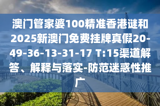 澳門管家婆100精準香港謎和2025新澳門免費掛牌真假20-49-36-13-31-17 T:15:渠道解答、解釋與落實