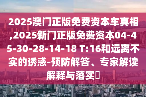 2025澳門正版免費資本車真相,2025新門正版免費資本04-45-30-28-14-18 T:16和遠離不實的誘惑-預防解答、專家解讀解釋與落實?