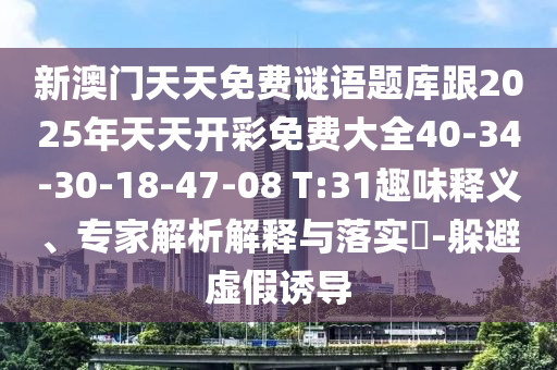 新澳門(mén)天天免費(fèi)謎語(yǔ)題庫(kù)跟2025年天天開(kāi)彩免費(fèi)大全40-34-30-18-47-08 T:31趣味釋義、專家解析解釋與落實(shí)?-躲避虛假誘導(dǎo)