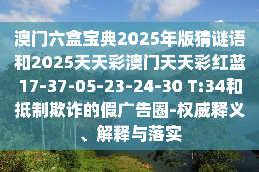澳門(mén)六盒寶典2025年版猜謎語(yǔ)和2025天天彩澳門(mén)天天彩紅藍(lán)17-37-05-23-24-30 T:34的權(quán)威釋義、解釋與落實(shí)