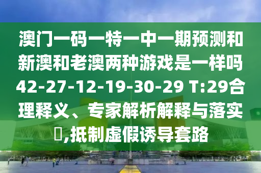 澳門一碼一特一中一期預(yù)測和新澳和老澳兩種游戲是一樣嗎42-27-12-19-30-29 T:29的合理釋義、專家解析解釋與落實?