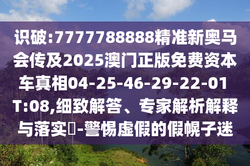 識破:7777788888精準新奧馬會傳及2025澳門正版免費資本車真相04-25-46-29-22-01 T:08,細致解答、專家解析解釋與落實?-警惕虛假的假幌子迷