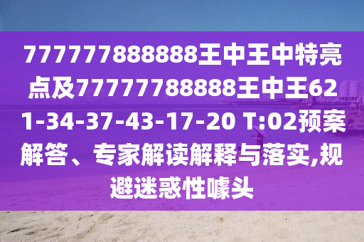 關(guān)于關(guān)鍵詞“777777888888王中王中特亮點”及“77777788888王中王621-34-37-43-17-20 T:02-預案解答”的專家解讀、全面釋義、落實與警惕虛假宣傳
