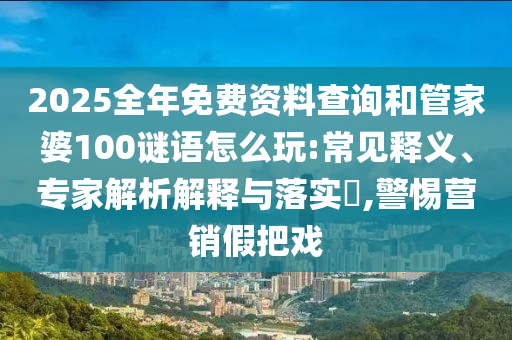 2025全年免費資料查詢”和“管家婆100謎語怎么玩”的警惕營銷假把戲:常見釋義、專家解析解釋與落實