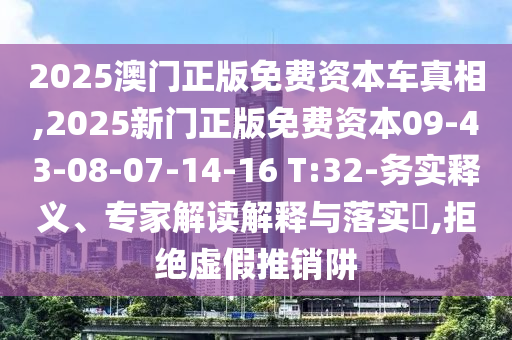 2025澳門正版免費(fèi)資本車真相,2025新門正版免費(fèi)資本09-43-08-07-14-16 T:32的務(wù)實(shí)釋義、專家解讀解釋與落實(shí)?