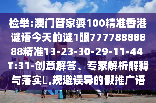 關(guān)于檢舉“澳門管家婆100精準(zhǔn)香港謎語”等相關(guān)內(nèi)容的解析與落實