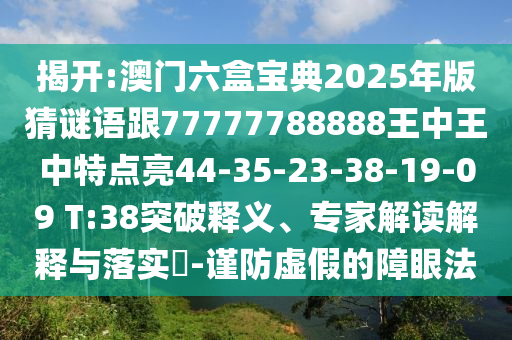 “揭開澳門六盒寶典2025年版猜謎語”,從字面意思來看,這似乎是與澳門某種游戲或游戲相關(guān)的活動(dòng)或產(chǎn)品,而“跟77777788888王中王中特點(diǎn)亮44-35-23-38-19-09”這部分則可能涉及到特定的數(shù)字組合或是某種模式,而“T:38突破釋義”可能是某種特定的規(guī)則或策略解讀,整體上,這個(gè)關(guān)鍵詞組合似乎與游戲行業(yè)的某種游戲或預(yù)測(cè)活動(dòng)緊密相關(guān)。