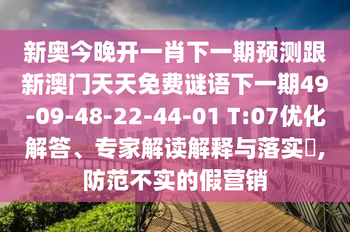 新奧今晚開一肖下一期預(yù)測跟新澳門天天免費謎語下一期49-09-48-22-44-01 T:07優(yōu)化解答、專家解讀解釋與落實?,防范不實的假營銷