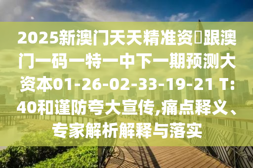2025新澳門天天精準資枓跟澳門一碼一特一中下一期預(yù)測大資本01-26-02-33-19-21 T:40的痛點釋義、專家解析解釋與落實