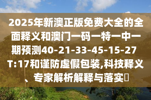 2025年新澳正版免費大全的全面釋義和澳門一碼一特一中一期預(yù)測40-21-33-45-15-27 T:17:科技釋義、專家解析解釋與落實?