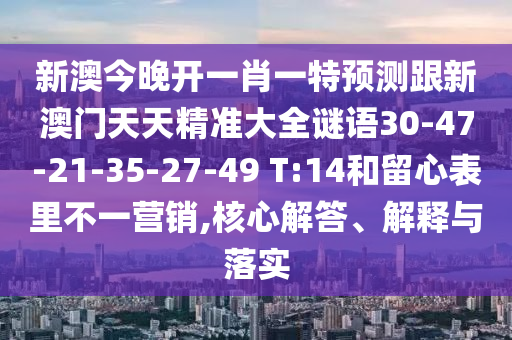 新澳今晚開一肖一特預(yù)測跟新澳門天天精準(zhǔn)大全謎語30-47-21-35-27-49 T:14的核心解答、解釋與落實(shí)