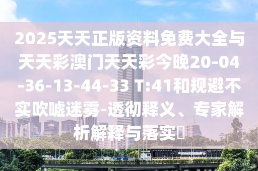2025天天正版資料免費大全與天天彩澳門天天彩今晚20-04-36-13-44-33 T:41和規(guī)避不實吹噓迷霧-透徹釋義、專家解析解釋與落實?