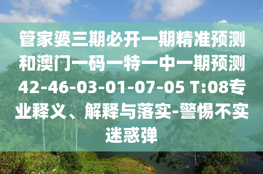 管家婆三期必開一期精準(zhǔn)預(yù)測和澳門一碼一特一中一期預(yù)測42-46-03-01-07-05 T:08的專業(yè)釋義、解釋與落實(shí)