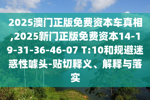 2025澳門正版免費資本車真相,2025新門正版免費資本14-19-31-36-46-07 T:10:貼切釋義、解釋與落實