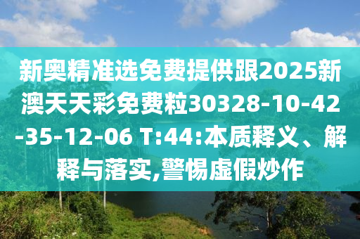 新奧精準(zhǔn)選免費(fèi)提供跟2025新澳天天彩免費(fèi)粒30328-10-42-35-12-06 T:44:本質(zhì)釋義、解釋與落實(shí),警惕虛假炒作