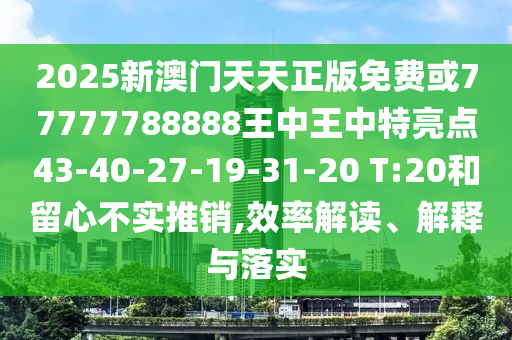 2025新澳門天天正版免費或77777788888王中王中特亮點43-40-27-19-31-20 T:20的效率解讀、解釋與落實