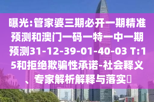 管家婆三期必開(kāi)一期精準(zhǔn)預(yù)測(cè)和澳門(mén)一碼一特一中一期預(yù)測(cè)31-12-39-01-40-03 T:15的社會(huì)釋義、專家解析解釋與落實(shí)?