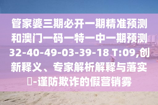 管家婆三期必開(kāi)一期精準(zhǔn)預(yù)測(cè)和澳門一碼一特一中一期預(yù)測(cè)32-40-49-03-39-18 T:09:創(chuàng)新釋義、專家解析解釋與落實(shí)?