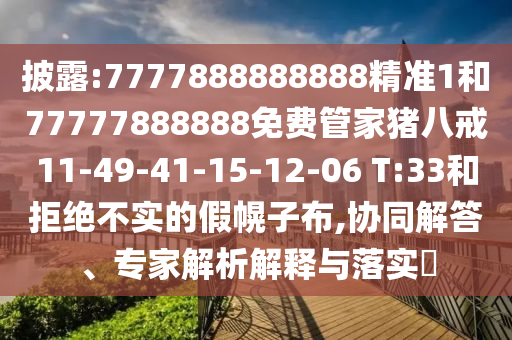 關(guān)于披露:7777888888888精準(zhǔn)1和77777888888免費(fèi)管家豬八戒等相關(guān)信息的全面釋義、專家解讀與落實(shí)及警惕虛假宣傳