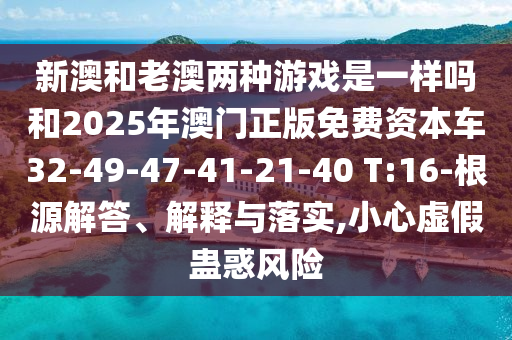 新澳和老澳兩種游戲是一樣嗎和2025年澳門正版免費資本車32-49-47-41-21-40 T:16-根源解答、解釋與落實,小心虛假蠱惑風(fēng)險