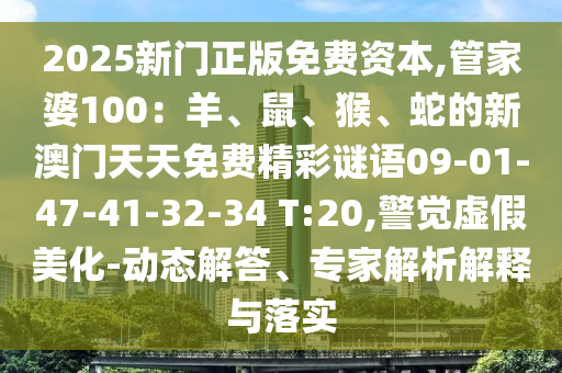 2025新門正版免費(fèi)資本,管家婆100:羊、鼠、猴、蛇的新澳門天天免費(fèi)精彩謎語09-01-47-41-32-34 T:20,警覺虛假美化-動態(tài)解答、專家解析解釋與落實(shí)