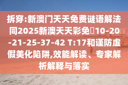 新澳門天天免費謎語解法同2025新澳天天彩免費10-20-21-25-37-42 T:17的效能解讀、專家解析解釋與落實
