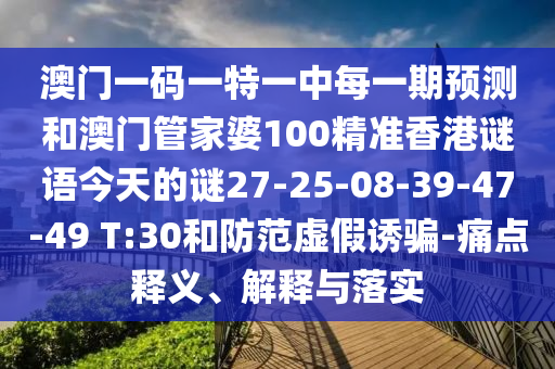 關于關鍵詞“以防”、“澳門一碼一特一中每一期預測”、“澳門管家婆100精準”、“香港謎語今天的謎27-25-08-39-47-49 T:30”的痛點釋義、解釋與落實,以及防范虛假誘騙的警示