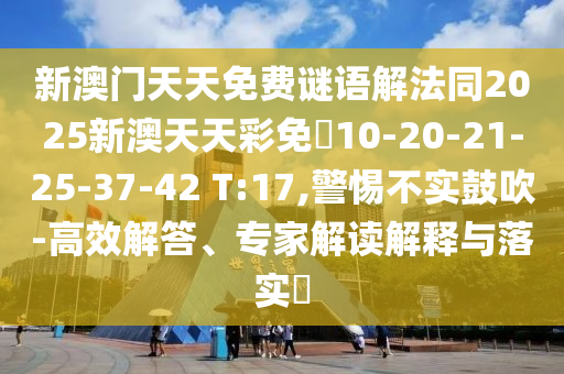 新澳門天天免費謎語解法同2025新澳天天彩免費10-20-21-25-37-42 T:17,警惕不實鼓吹-高效解答、專家解讀解釋與落實?