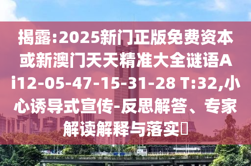 揭露:2025新門正版免費(fèi)資本或新澳門天天精準(zhǔn)大全謎語Ai12-05-47-15-31-28 T:32,小心誘導(dǎo)式宣傳-反思解答、專家解讀解釋與落實(shí)?